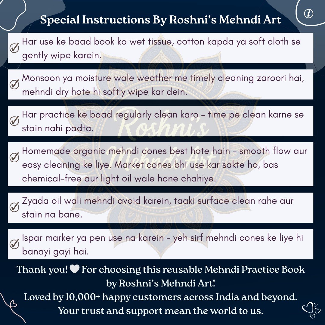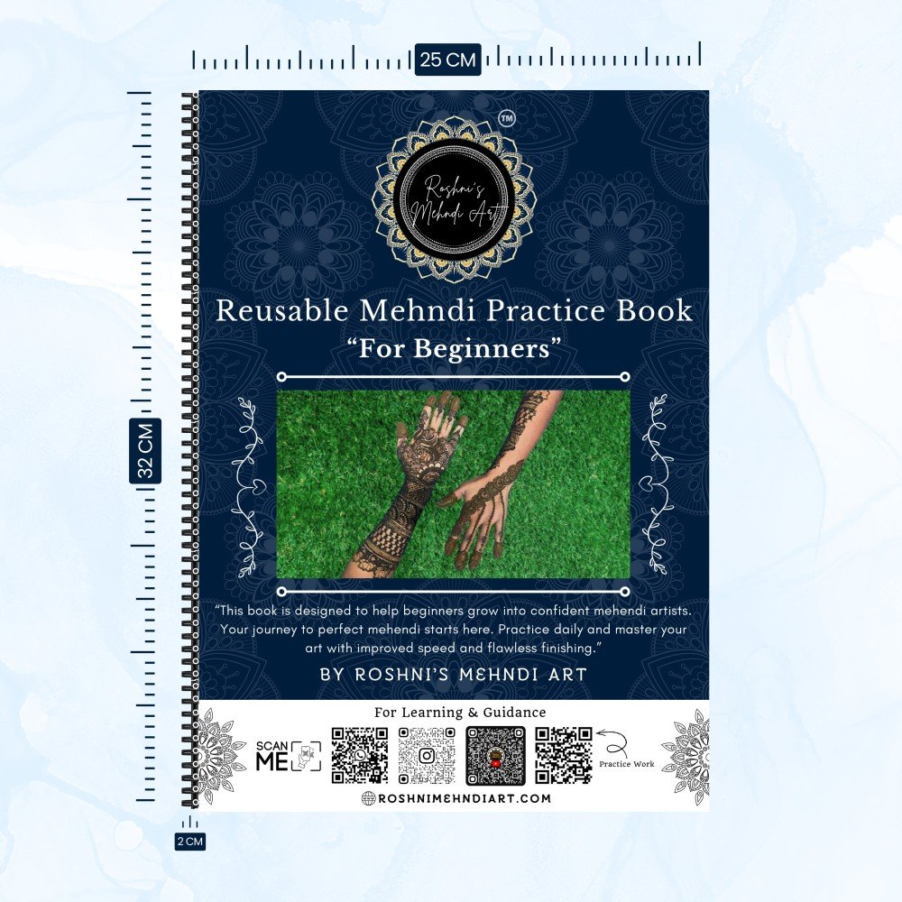 Perfect your mehndi skills with our Reusable Mehndi Practice Book. Order now! 🌺